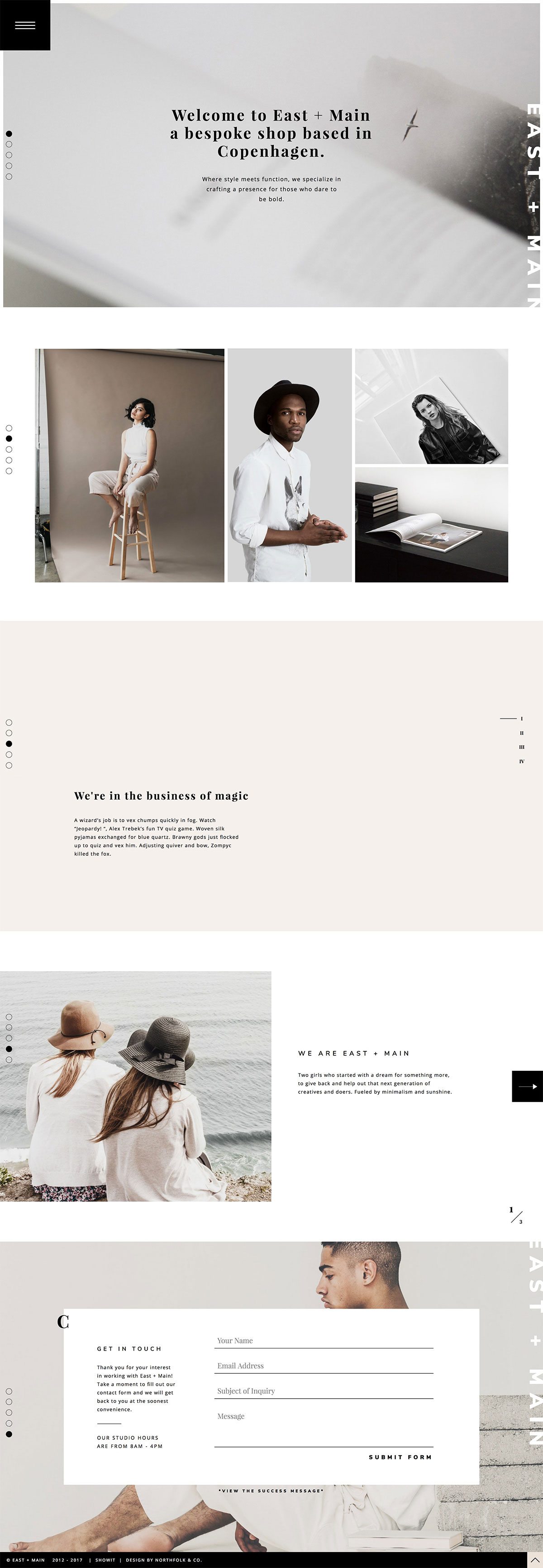 Welcome to East + Main by Northfolk & Co. A luxurious Showit SHOP and BLOGSITE that offers elegant design with personal touches. With its beautiful imagery, thoughtful typography and charming color palette, this design is sure to wow customers and take your shop to the next level.