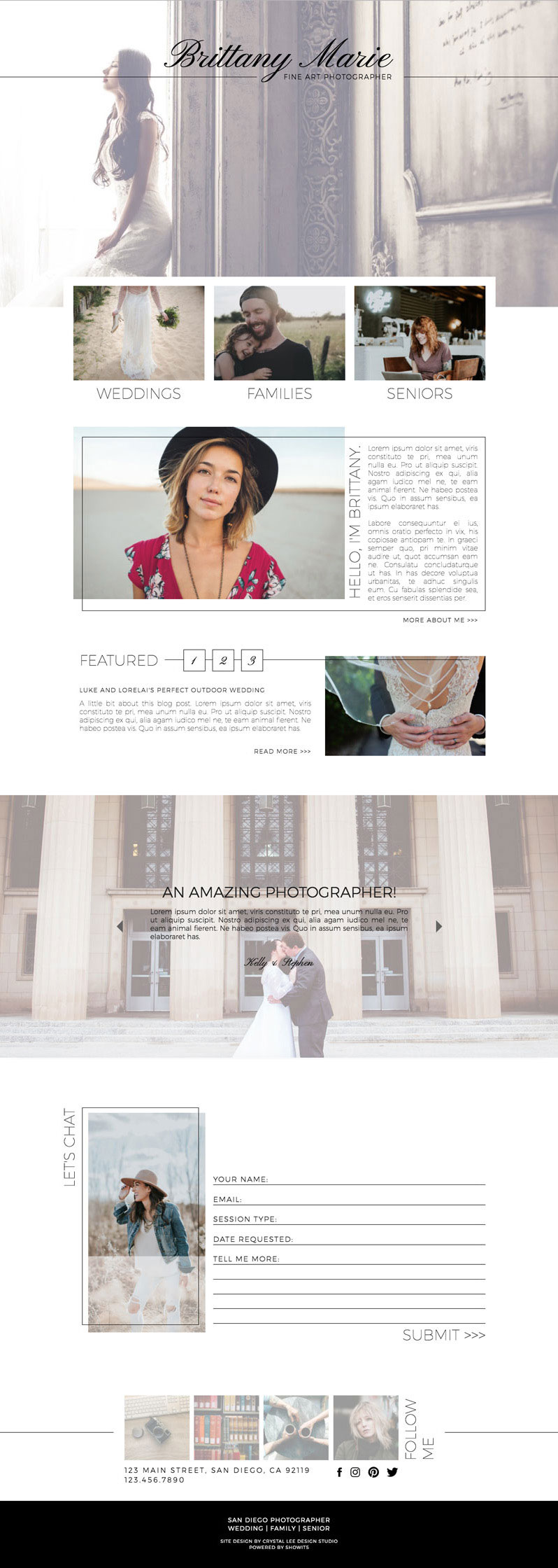 Brittany Marie was designed for the multi-specialty photographer. Featuring a sleek and modern design that will make you stand out from the crowd.