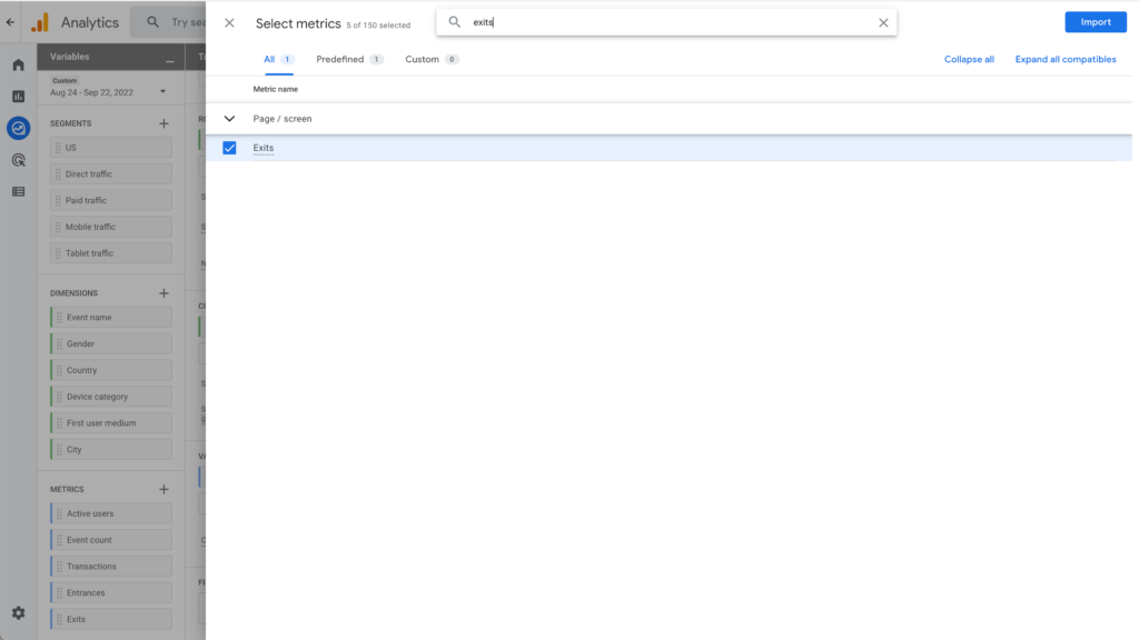 And, in metrics, you should now see the “Exits” option appear there.