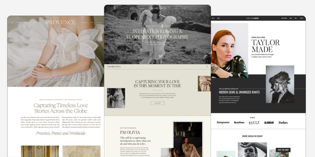 Showit templates come in a variety of styles to match your unique vibe, like these.