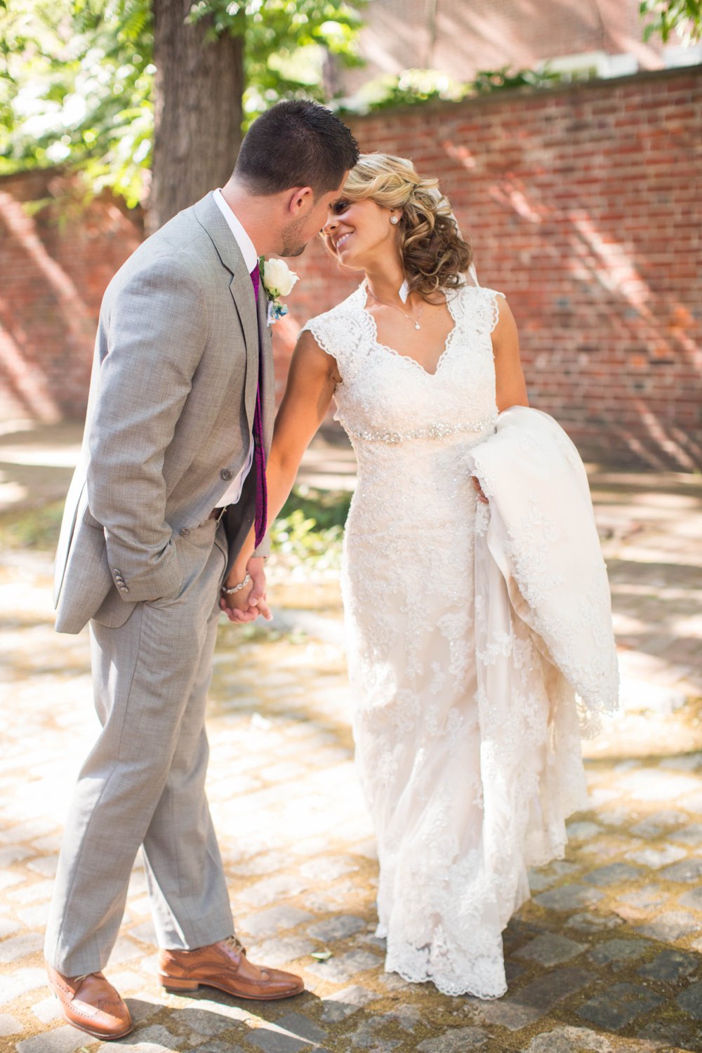 “This image was taken at 1pm on the busy streets of Philadelphia. We had the sun placed behind them and I switched my angle to the side to get the pretty back light, add the texture of the brick wall/tree, and used the tree branched to help filter the light. You could clearly see how bright it was by looking at the highlights. Okay, cobblestone road.”