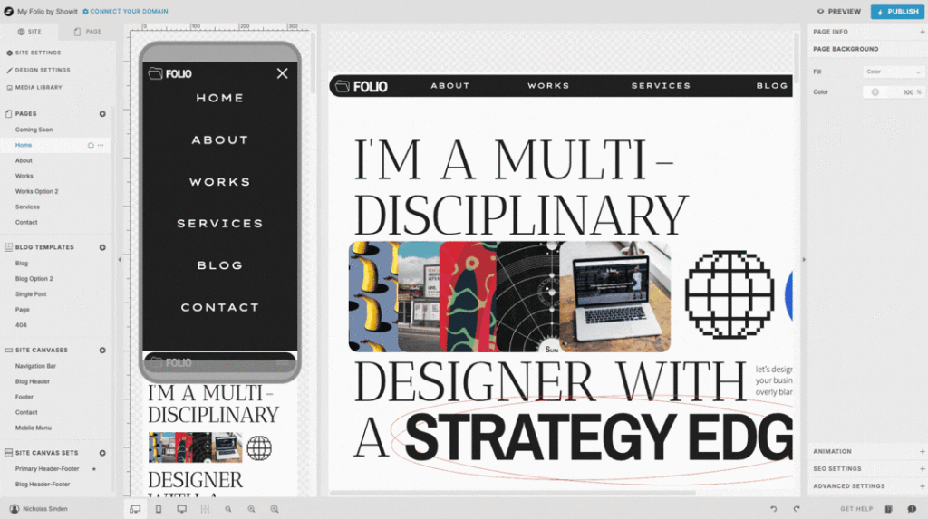 This feature helps you make quick visual adjustments without leaving Showit, keeping your creative momentum intact.
